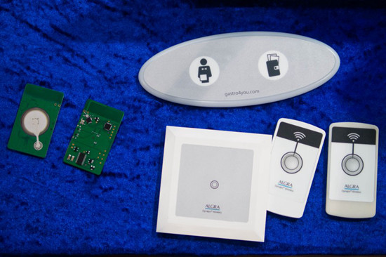 在文章最后,筆者想要介紹一款能源采集方面的產(chǎn)品。在展會上,瑞士公司Algra所開發(fā)的這些開關讓我記憶猶新。他們的運行依賴于壓電效應——開關當中的微型金屬板可以記錄下僅數(shù)微米的按壓,并將其轉(zhuǎn)換成能源來發(fā)送無線信號。