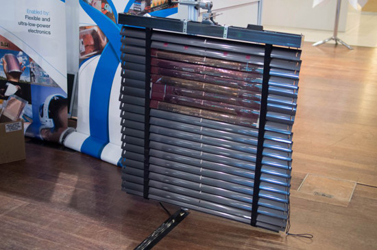 上圖中的產(chǎn)品來自于一家名為Holst Centre Eindhoven的荷蘭公司。他們的有機光電二極管可以感應到光線的強度,并對百葉窗的開合進行相應的調(diào)整。這家公司還在與化學巨頭杜邦公司聯(lián)合開發(fā)柔性塑料OLED燈。